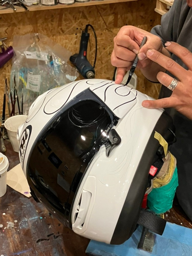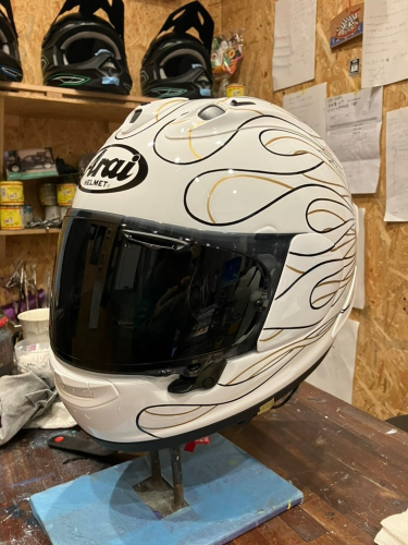 先日、愛用のヘルメットにピンストライプを描いてもらいに、川越市にあるSANKON SIGNSに行って来ました。